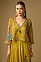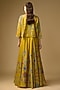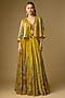Featuring a mustard flared lehenga in gajji silk base with hand embroidery and floral print. It is paired with a jacket and an inner. Accentuate it with statement jewellery, a potli bag and heels for a stylish ensemble, perfect for haldi functions, pre-wedding ceremonies or grand festive occasions.
