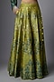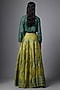 Featuring a mustard skirt in vegan tissue and slub silk base with floral print. It is paired with a green bow-neck top and an inner. Accessorise this designer set with statement earrings, pump heels and an embellished clutch, perfect for festive occasion, cultural events or sangeet ceremony.