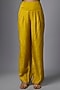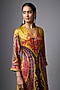 Featuring a mustard yellow kurta in vegan gajji silk base with paisley print and hand embroidery. It is paired with palazzo pants. Accentuate it with dangler earrings and heels for a festive occasion, family gathering or intimate pooja ceremony.