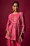 Featuring a pink peplum top in slub silk base with bandhani print. It is paired with palazzo pants. Accentuate it with dangler earrings and heels for festive soirees.