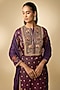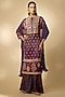 Featuring a purple kurta in gajji silk base with digital print and hand embellishments. It is paired with printed palazzo and a crushed dupatta. Style it with kundan polki earrings and block heels for festive gatherings or pooja ceremony.