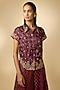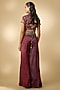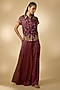 Featuring a purple shirt in vegan gajji silk base with embroidery. It is paired with printed palazzo. Style it with statement earrings and block heels for festive occasions, trousseau or carnival events.
