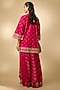 Featuring a rani pink shirt in chanderi base with dori embroidery. It is paired with an inner and kalidar palazzo. Style it with dangler earrings and mules for daytime functions or festive gatherings.