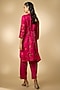 Featuring a rani pink kurta in vegan gajji silk base with resham embroidery. It is paired with cotton stretch pants. Style it with kundan polki earrings and block heels for festive gatherings or pooja ceremony.