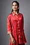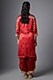 Featuring a red asymmetric shirt in gajji base with patola print. It is paired with pants. Accentuate it with dangler earrings and heels for a festive occasion or pooja ceremony.