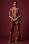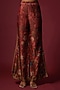 Featuring a red peplum top in gajji silk base with print and embroidery. It is paired with printed pants. Accentuate it with dangler earrings and heels for festive soirees.