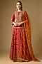 Red Slub Silk Dori Embroidered Lehenga Set