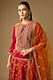 Featuring a red lehenga in slub silk base with dori embroidery and patola print. It is paired with a top and an organza embroidered dupatta. Accentuate it with gold or polki jewellery, an embroidered potli bag and heels for stylish ensemble, perfect for weddings or grand festive occasions.