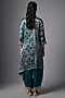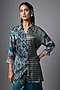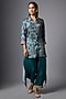 Featuring a teal asymmetric shirt in gajji silk base with patola print. It is paired with pants. Accessorise this designer set with statement earrings, pump heels and an embellished clutch, perfect for festive occasion, cultural events or sangeet ceremony.