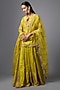Yellow Slub Silk Resham Embroidered Crushed Lehenga Set