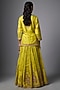Featuring a mustard crushed lehenga in slub silk base with resham embroidery. It is paired with an embroidered long blouse and an organza embroidered dupatta. Accentuate it with kundan polki earrings and heels for a reception, haldi, wedding, sangeet or engagement ceremony.
