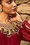 Featuring a deep red kurta in chanderi base with sequins, beads, zardosi and crystal hand embroidery. It is paired with chanderi pants, including a silk organza dupatta having floral motif and applique tissue embroidery. Accentuate it with statement earrings and heels for a perfect festive ready-look.