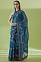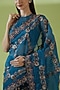 Teal Blue Silk Organza Hand Screen Printed & Embroidered Saree Set