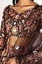 Featuring a brown lehenga in cotton satin, shantoon, and cotton silk base with mirror work and floral print. It is paired with a matching blouse and an organza dupatta.