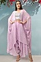 Featuring a lilac cape in viscose crepe base with shibori print. It is paired with cotton satin draped pants and a mirror embellished bustier. Style it with dangler earrings and heels for a complete look.
