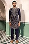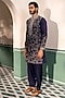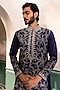 Featuring a blue kurta in silk viscose base with beads, thread, sequins and cutdana hand embroidery. It is paired with matching pants.