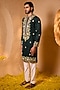 Featuring a forest green kurta in swiss silk base with hand embroidery. It is paired with pants. Style with kolhapuri sandals for a festive, cultural occasion or mehendi ceremony, exuding traditional charm and elegance.