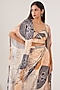 Beige Natural Crepe Abstract Printed Draped Skirt Set