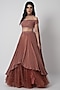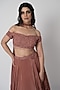 Featuring a blush pink lehenga in crepe base with sequins embroidery. It is paired with an embroidered off-shoulder crop top and a dupatta. Accentuate with statement jewellery and heels for a wedding or sangeet ceremony.