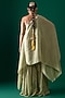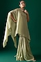 Featuring a green off-shoulder kurta in bemberg satin organza and taffeta base with mirror embroidery. It is paired with sharara pants. Accentuate it with dangler earrings and block heels for festive gatherings or mehendi ceremony.