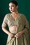 Featuring a green lehenga in habutai silk base. It is paired with a mirror embroidered bralette and a dupatta. Accentuate it with polki jewellery and block heels for a wedding or mehendi ceremony.