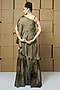 Featuring a multi-colored one-shoulder top in bemberg satin organza and taffeta base with abstract print and an embellished sleeves. It is paired with sharara pants. Accentuate it with minimal jewellery and strappy heels for a stylish ensemble, ideal for brunches, casual outings or festive gatherings.