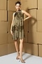 Multi-Colored Taffeta Abstract Printed Halter Neck Dress