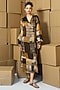 Multi-Colored Taffeta Abstract Printed Shirt-Style Midi Dress