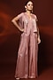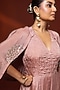 Featuring a pink jumpsuit in habutai silk base. It is paired with a mirror embroidered short jacket. Accentuate it with statement earrings and block heels for festive gatherings or sangeet ceremony.