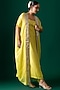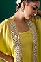 Featuring a yellow kaftan-style kurta in bemberg satin organza and taffeta base with mirror embroidery. It is paired with straight pants. Accentuate it with dangler earrings and block heels for festive gatherings or haldi ceremony.