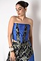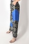 Featuring a blue and black corset in banarasi silk base with patchwork detail. It is paired with matching pants having back elastic.