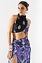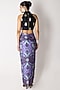 Featuring a multi-colored cropped top in banarasi silk base with galaxy print. It is paired with a contrasting twist knot skirt.