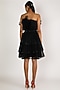 Featuring a black horizontally pre pleated dress in silk organza base with an attached belt.