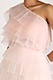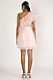 Featuring a blush pink ruffled dress in silk organza base with an attached floral belt. It has one shoulder pleated neckline.