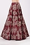 Featuring a cherry red lehenga in raw silk base with aari hand embroidery. It is paired with a matching blouse and a net dupatta.