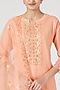 Featuring a peach kurta in cotton base with thread and mirror embroidery. It is paired with matching ankle length pants and an organza dupatta.