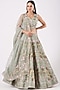 Featuring a pista green lehenga in raw silk base with floral embroidery. It is paired with a matching blouse and an organza dupatta.