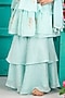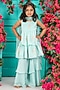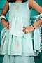 Featuring a blue sleeveless peplum for girls in chanderi base with zari, thread and sequins embroidery. It is paired with layered gharara and a dupatta. Accentuate it with cute hair clips, comfy sandals and a tiny sling bag for a festive occasion or wedding ceremony.