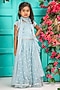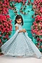 Featuring a blue lehenga for girls in net base with embroidery. It is paired with a corset having smocket elasticated back detail and a dupatta. Accentuate it with cute hair clips, comfy sandals and a tiny sling bag for a festive occasion or wedding ceremony.