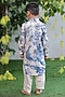 Blue & White Linen Printed Kurta Set For Boys