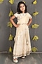 Champagne Gold Net Embroidered Lehenga Set For Girls