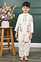 Featuring a cream kurta for boys in mal and chanderi base with embroidery. It is paired with cotton silk salwar. Style it with a watch and a classic pair of shoes for any festive occasion.