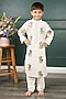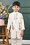 Cream Mal & Chanderi Embroidered Kurta Set For Boys