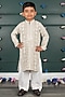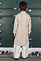 Featuring a grey-beige kurta for boys in georgette cotton silk base with embroidery. It is paired with white cream pants. Style it with a watch and pair of mojris for a festive occasion or sangeet ceremony.