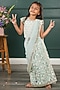 Light Blue Net Embroidered Stitched Saree Set For Girls
