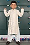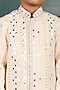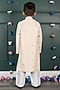 Light Peach Georgette & Silk Mirror Embroidered Sherwani Set For Boys