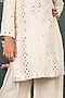 Featuring a nude beige kurta for girls in georgette, shantoon, and katan silk base with mirror embroidery. It is paired with palazzo pants and a dupatta. Style it with cute hair accessories and sandals for a festive occasion or wedding ceremony.