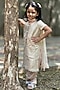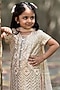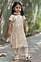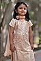 Featuring a nude peach kurta for girls in crepe silk base with sequins thread and zari embroidery. It is paired with palazzo pants and a net dupatta. Style it with cute hair accessories and sandals for a festive occasion or wedding ceremony.