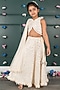 Featuring a nude peach lehenga for girls in georgette and net base with embroidery. It is paired with an embroidered blouse and a dupatta. Style it with sandals and hair accessories for a wedding or festive occasion.