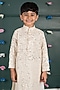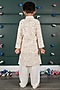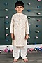 Featuring a peach kurta for boys in georgette cotton silk base with embroidery. It is paired with white cream pants. Style it with a watch and pair of mojris for a festive occasion or sangeet ceremony.